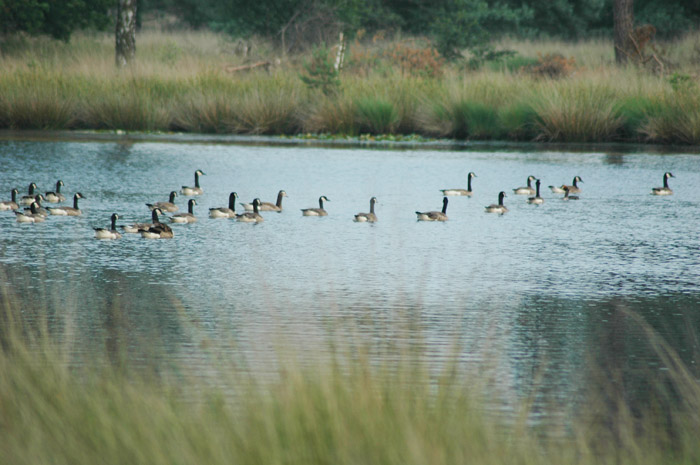 Bij ieder ven broedt in het voorjaar wel een paartje canadaganzen. Deze watervogelsoort komt pas de laatste tien jaar voor in het gebied. Het is een mooie ganzensoort om te zien maar hoort eigenlijk niet thuis in Nederland. Ze zijn vanuit Canada via Engeland in Nederland terecht gekomen. Om canadaganzen van dichtbij te zien, is geduld nodig.